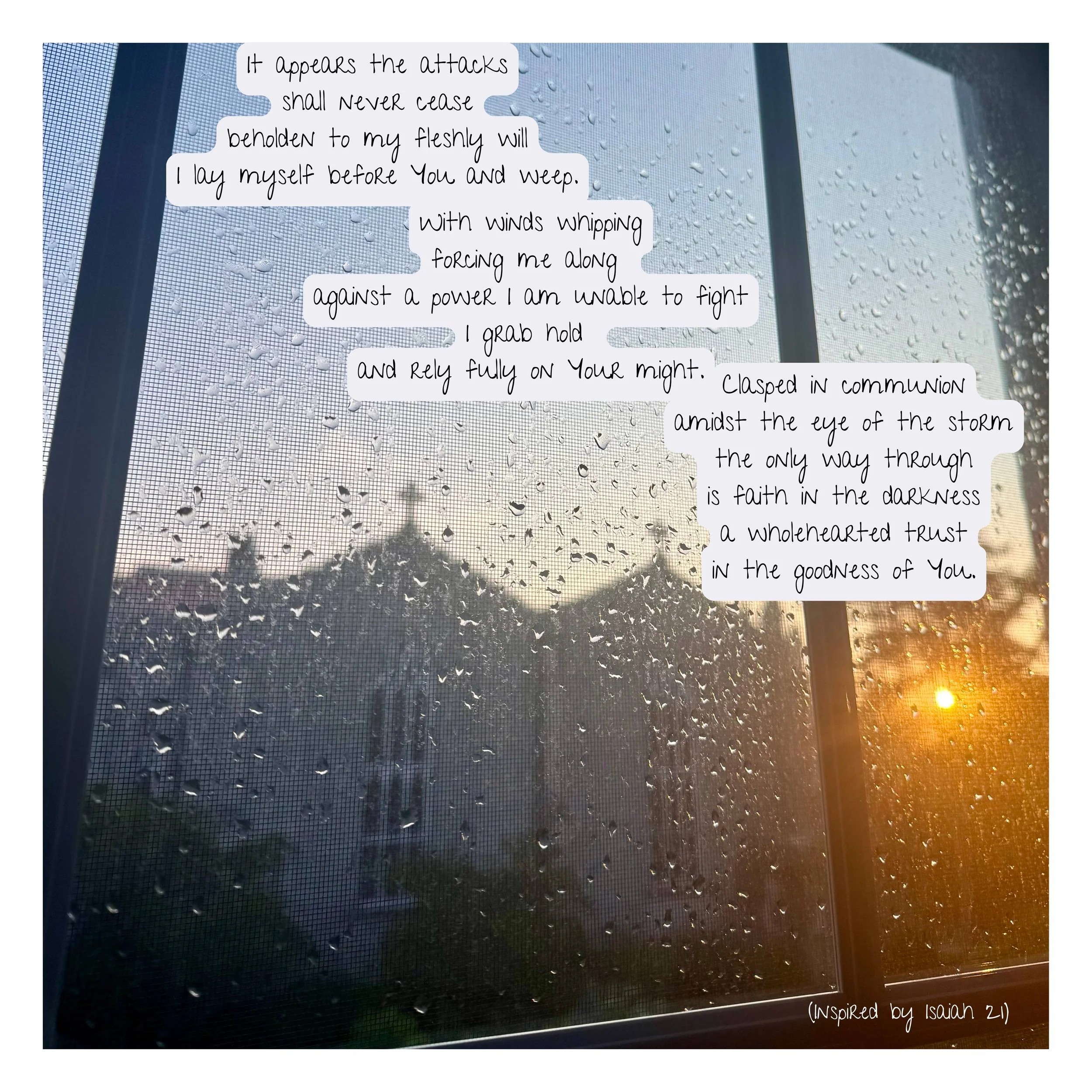 It is in the unknown circumstances around us that we are gifted the opportunity to be known by our loving Creator. These poems hold the words and feelings that emerged out of my own journey in leaving a path I knew God had brought me to, in order to be open to what was unfolding next. This threshold of saying goodbye to what was, before greeting what comes next, is a sacred space that yearns to be tended to with gentleness and care. I pray these poems provide an anchor in the presence of what is, here in the unknown.